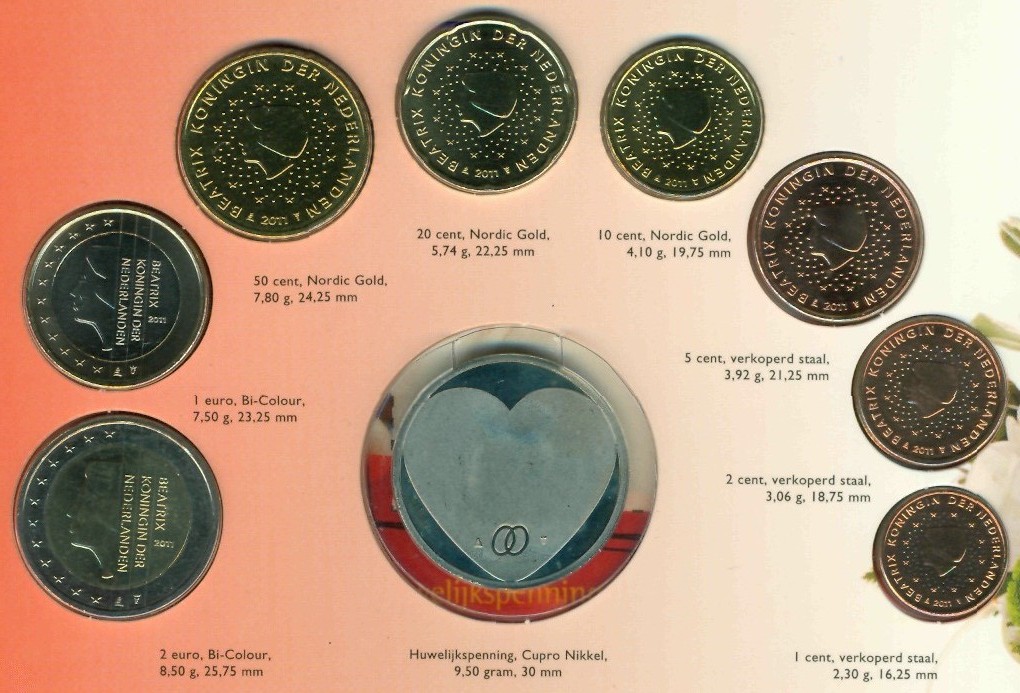 Годовой набор евромонет 2011 года выпуска, в подарочной упаковке "Свадебный".