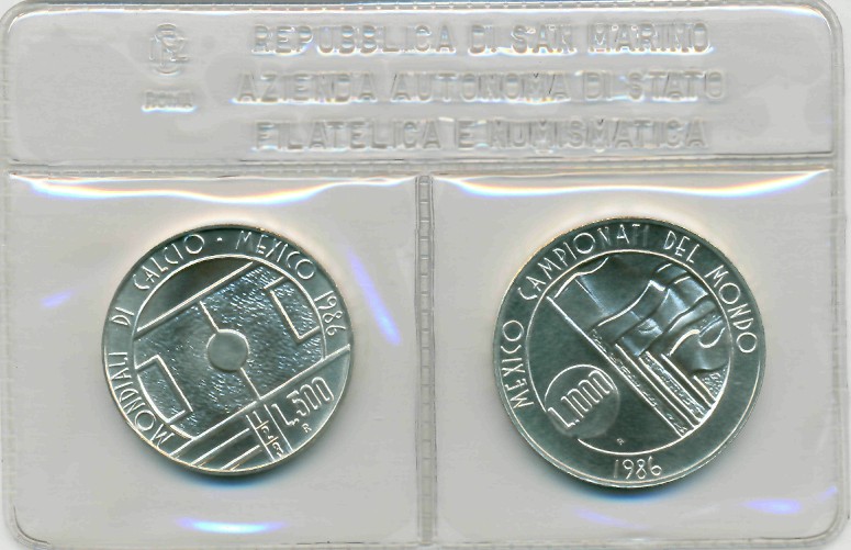 Набор памятных серебряных монет, приуроченный к проведению XIII Чемпионата Мира по футболу в Мексике, 1986 год.