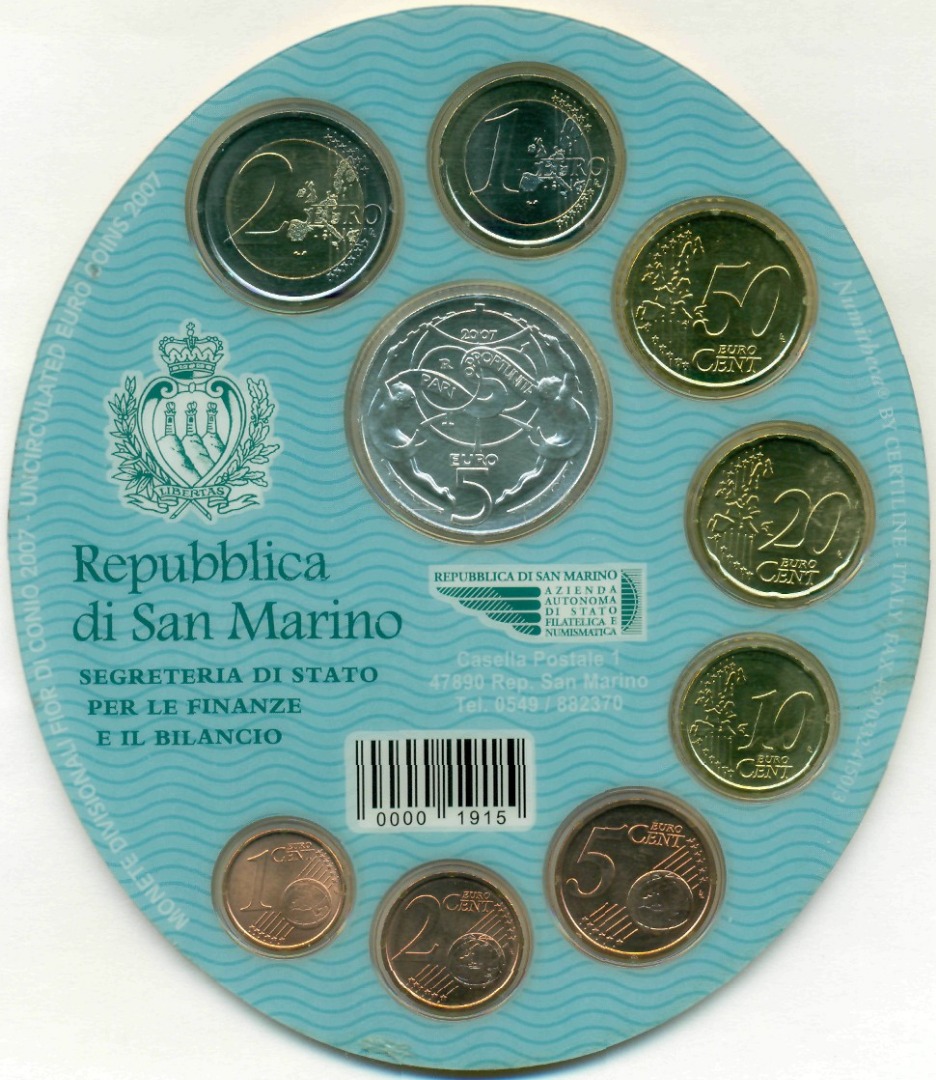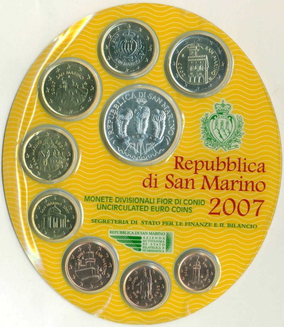 Официальный годовой набор евромонет, выпущенный в 2007 году.