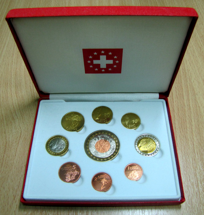 Набор пробных евромонет 2003 года в футляре.