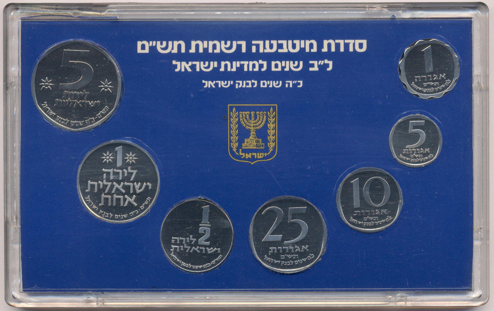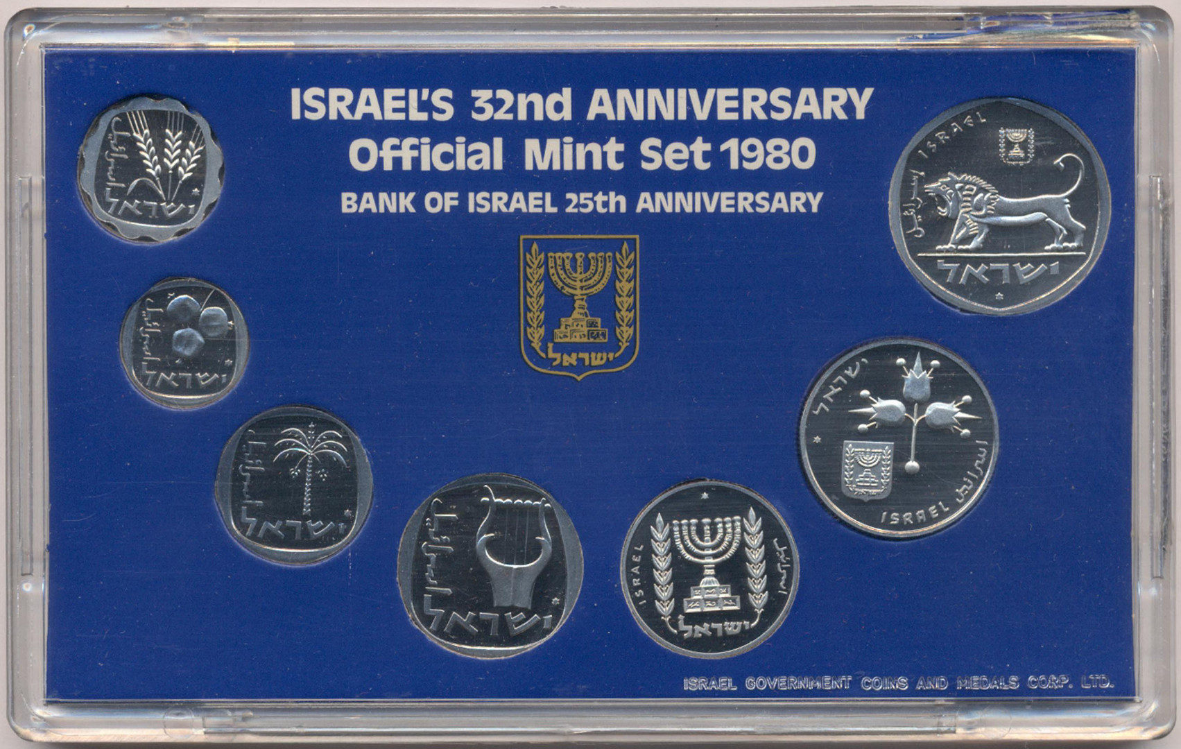 Годовой набор монет 1980 года, посвященный 25-летию банка Израиля.