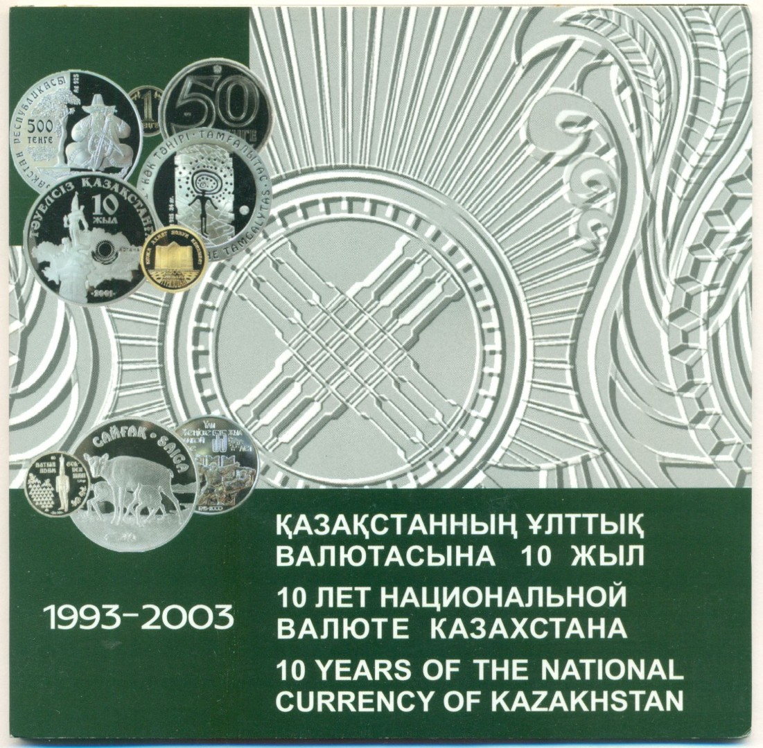 Набор монет, посвященных 10-летию национальной валюты Казахстана.