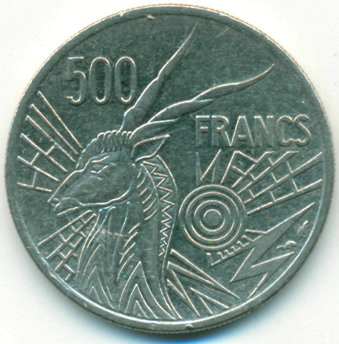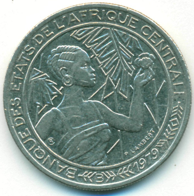 Монета выпущена для обращения на территории Центральноафриканской респубики (В).