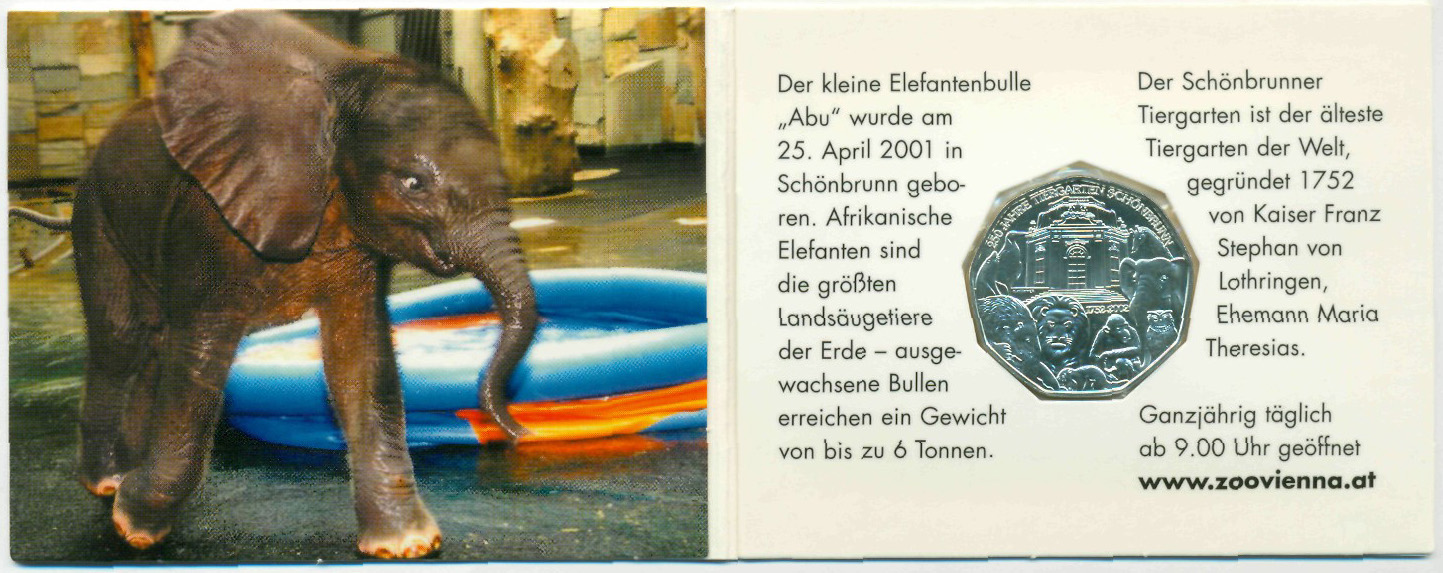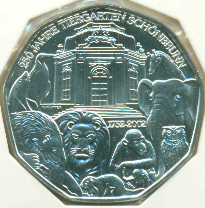 Памятная монета, посвященная 250-й годовщине со дня открытия Шёнбруннского зоопарка.