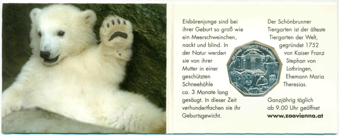 Памятная монета, посвященная 250-й годовщине со дня открытия Шёнбруннского зоопарка.